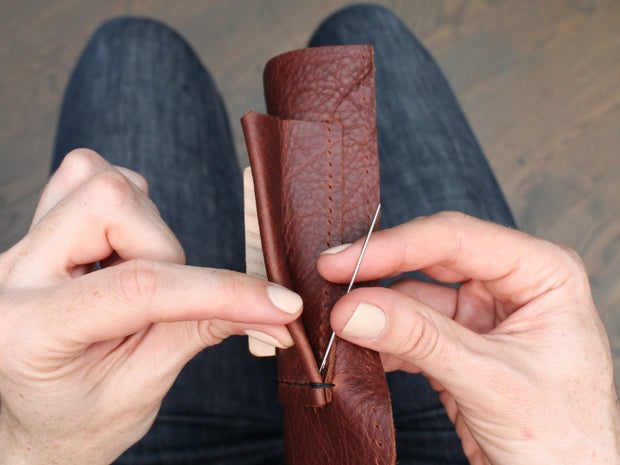 Hand Stitching Leather With An Awl And Two Needles Youtube